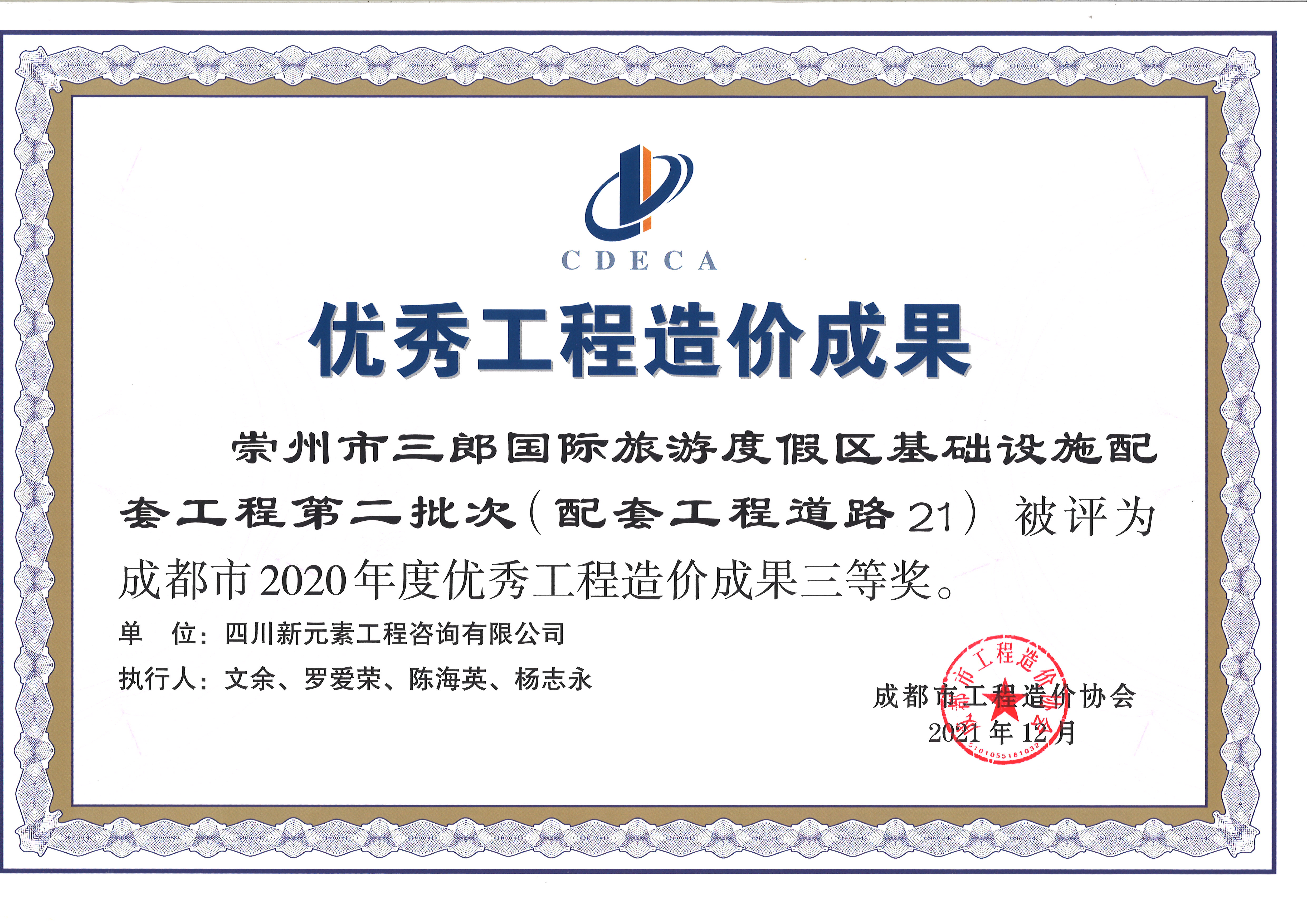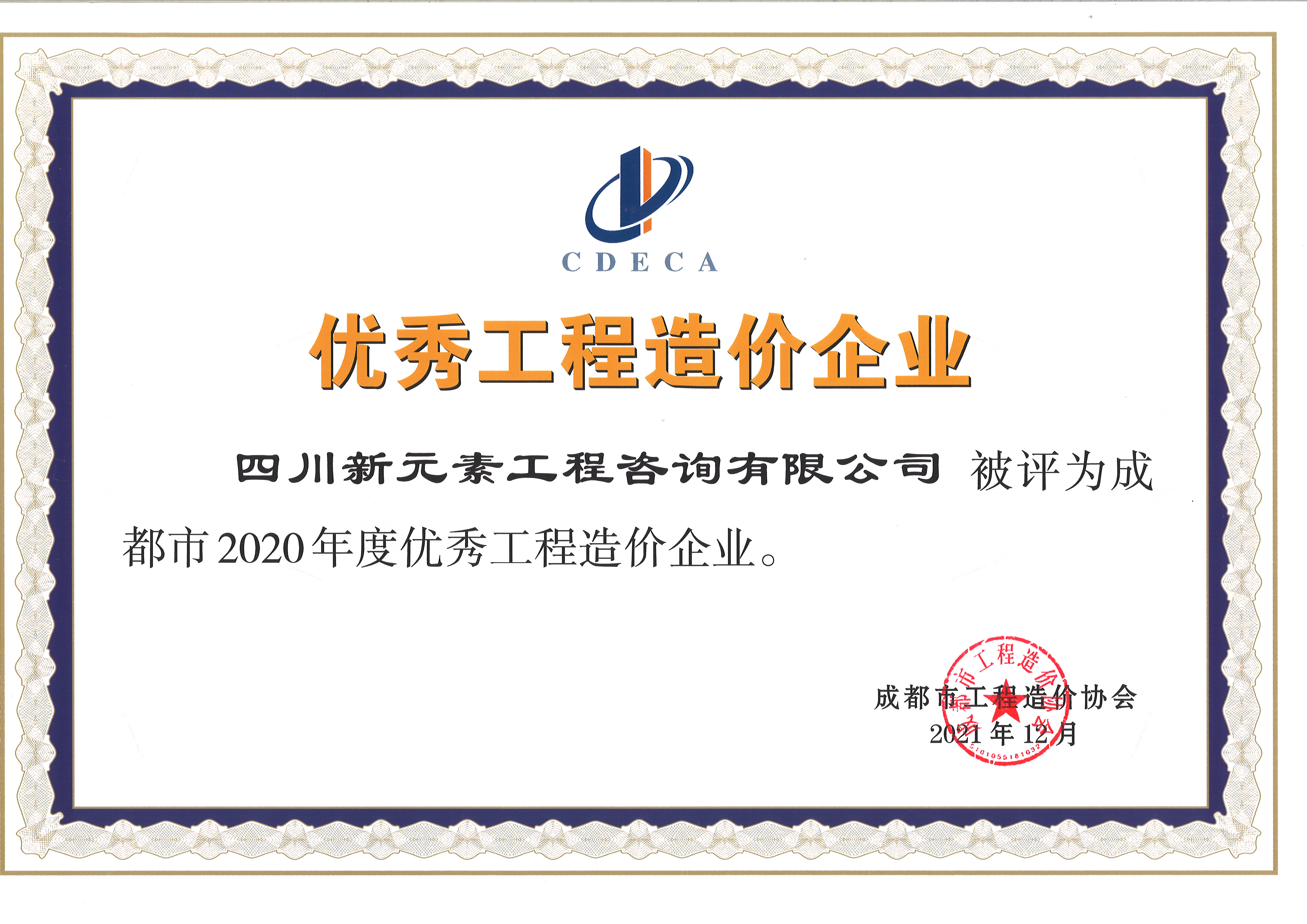 2020成都市优秀工程造价企业