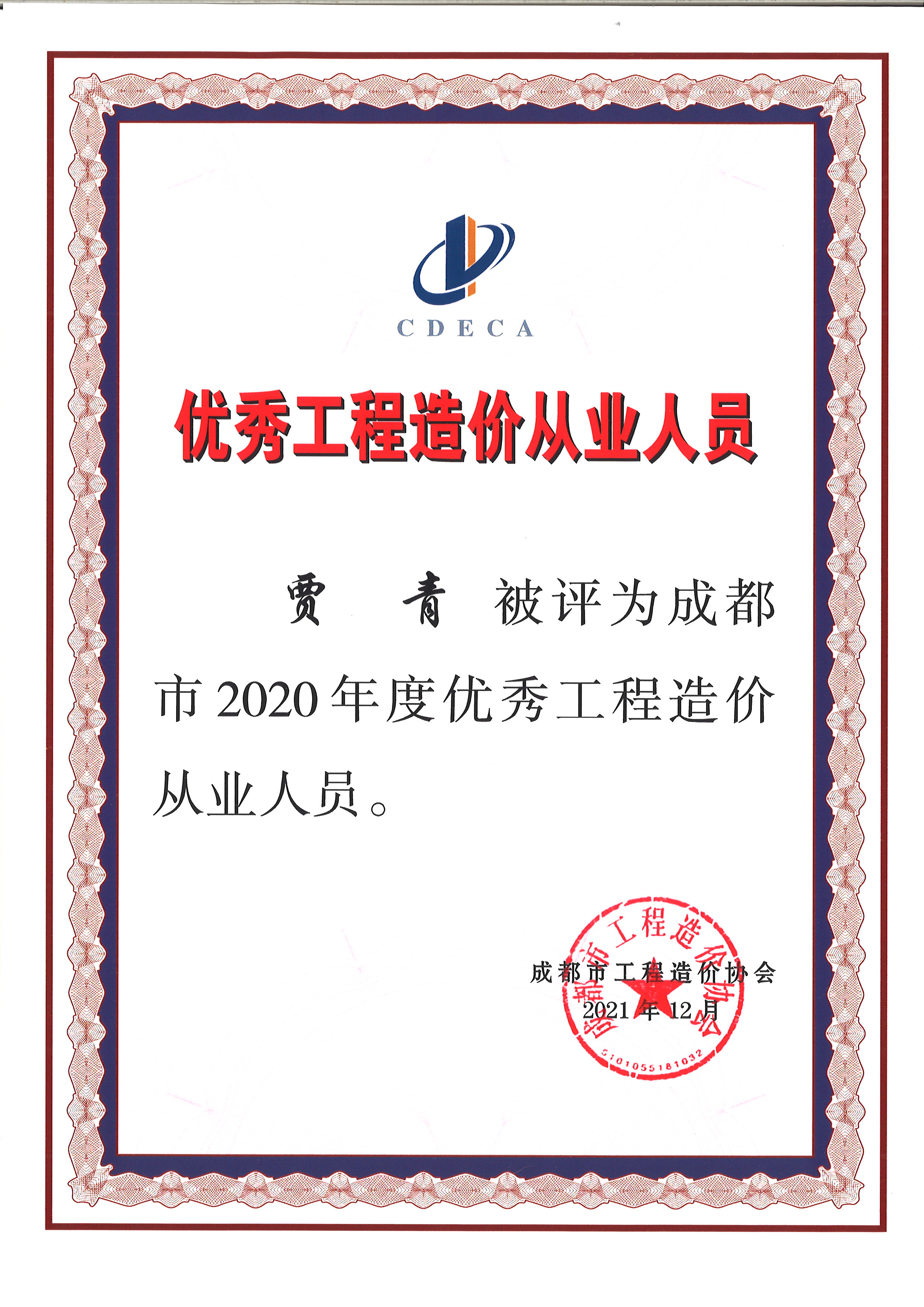 2020优秀造价从业人员——贾青